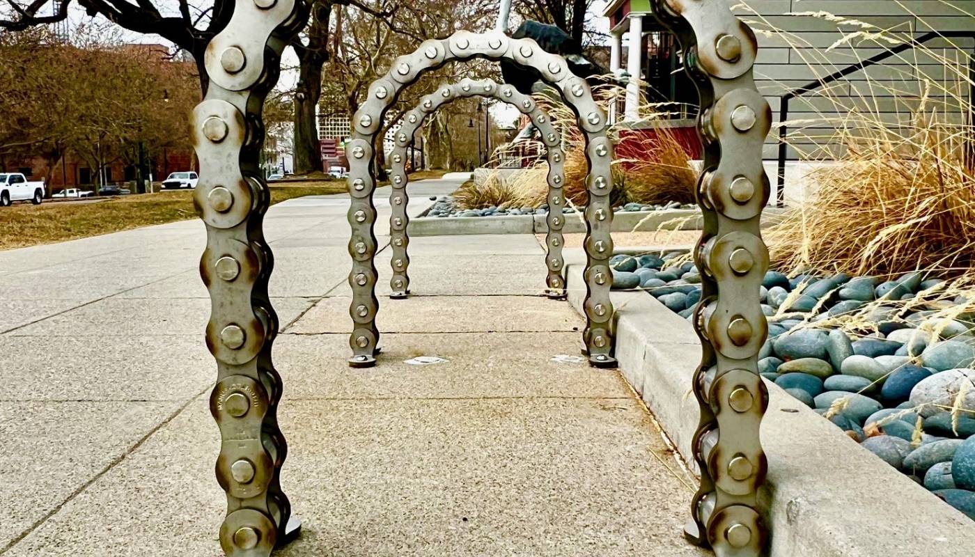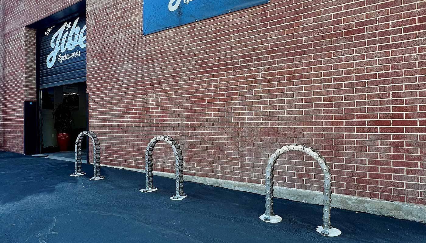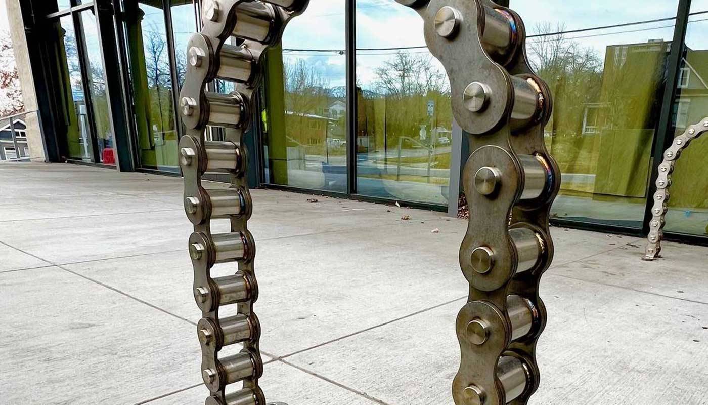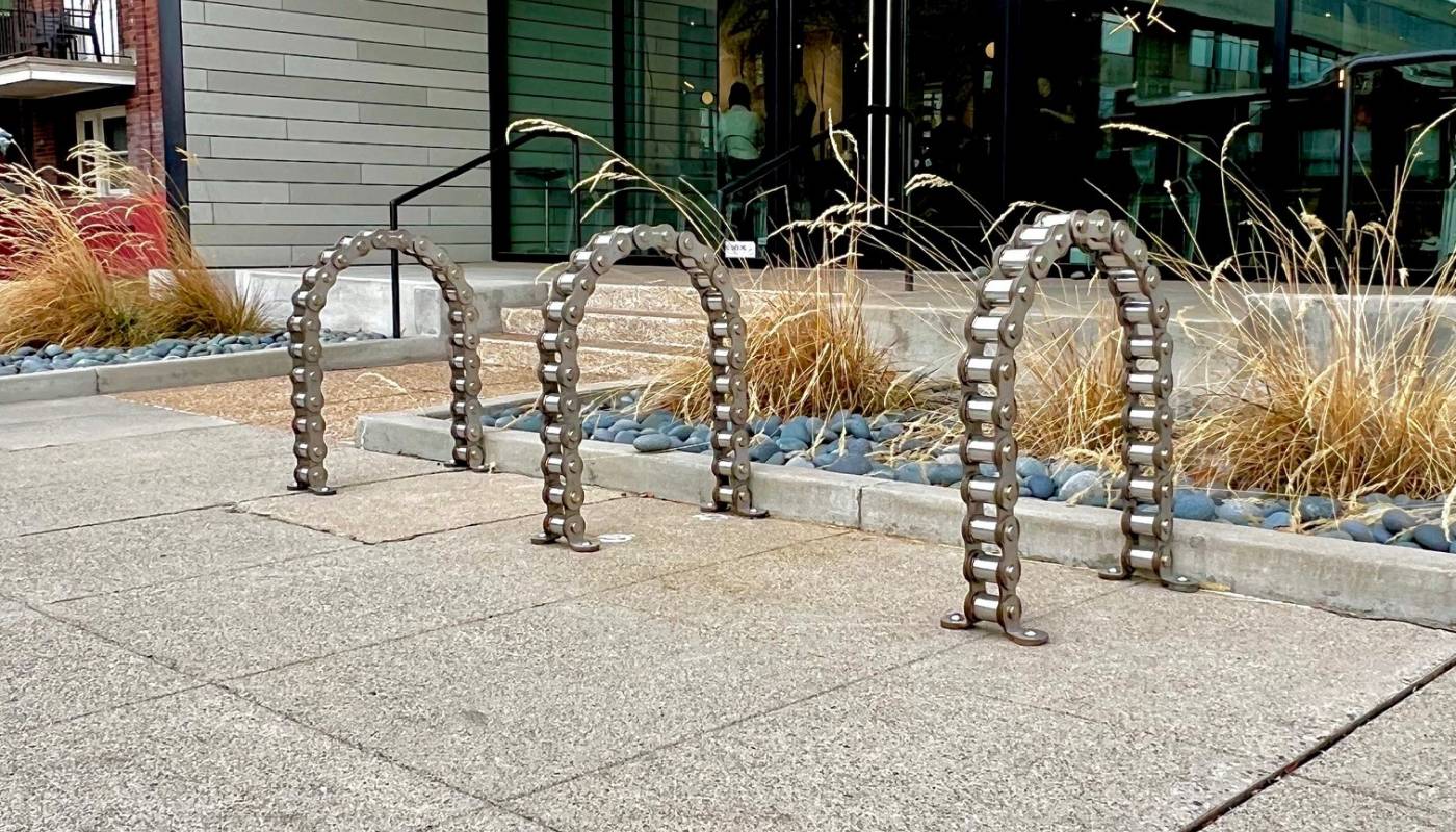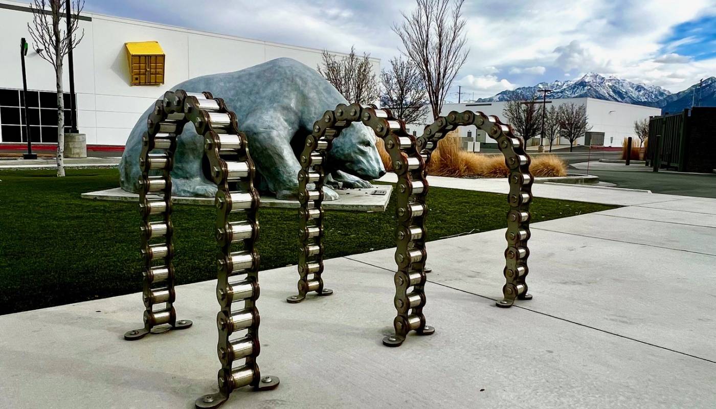 Chains bike racks were created by local artist, Nick Vienneau, and fabricated by Patric Alexander of The Toolroom Inc., a Utah-based company. These functional art installations can be found throughout Salt Lake County. We love and support biking culture!