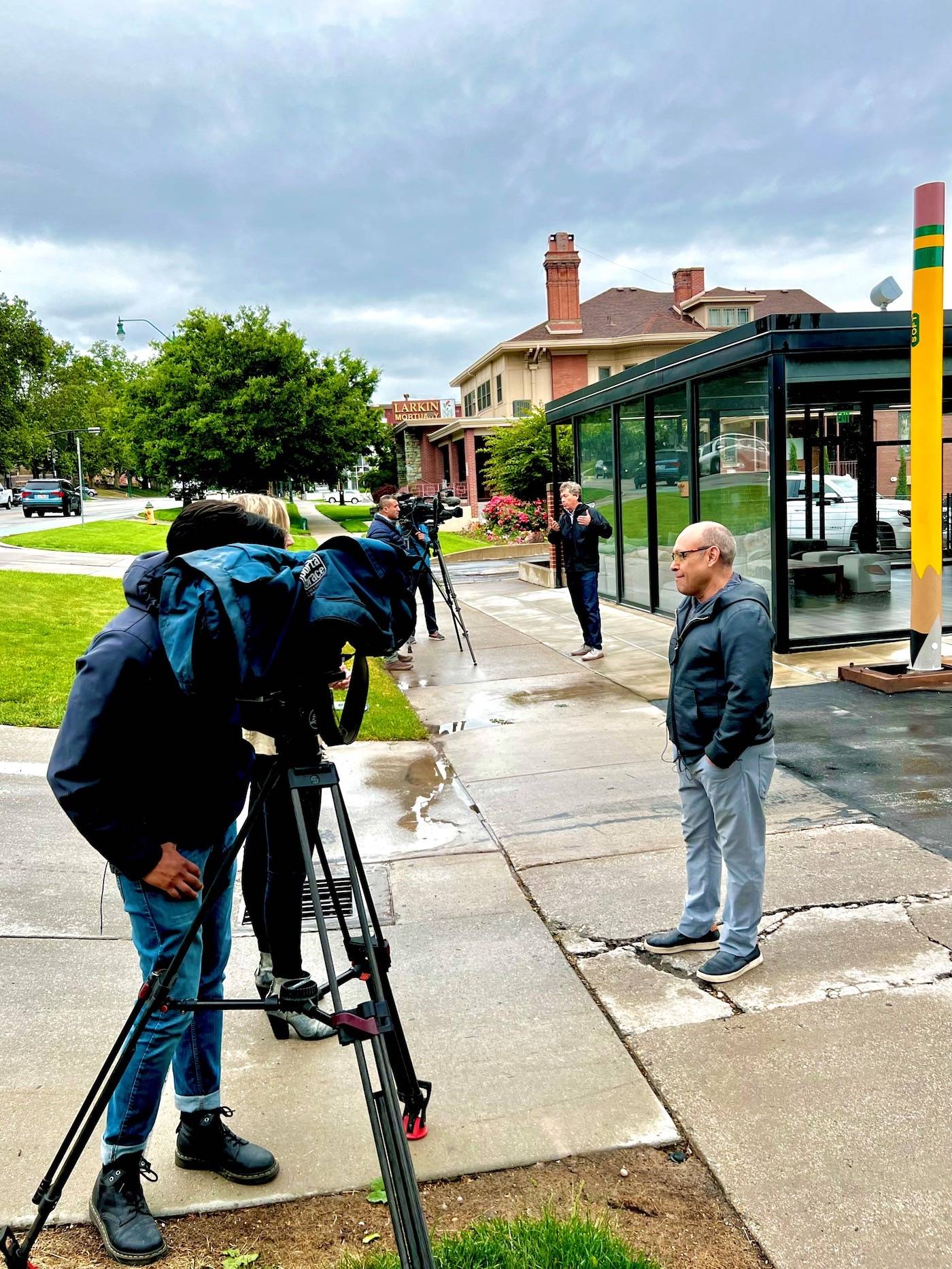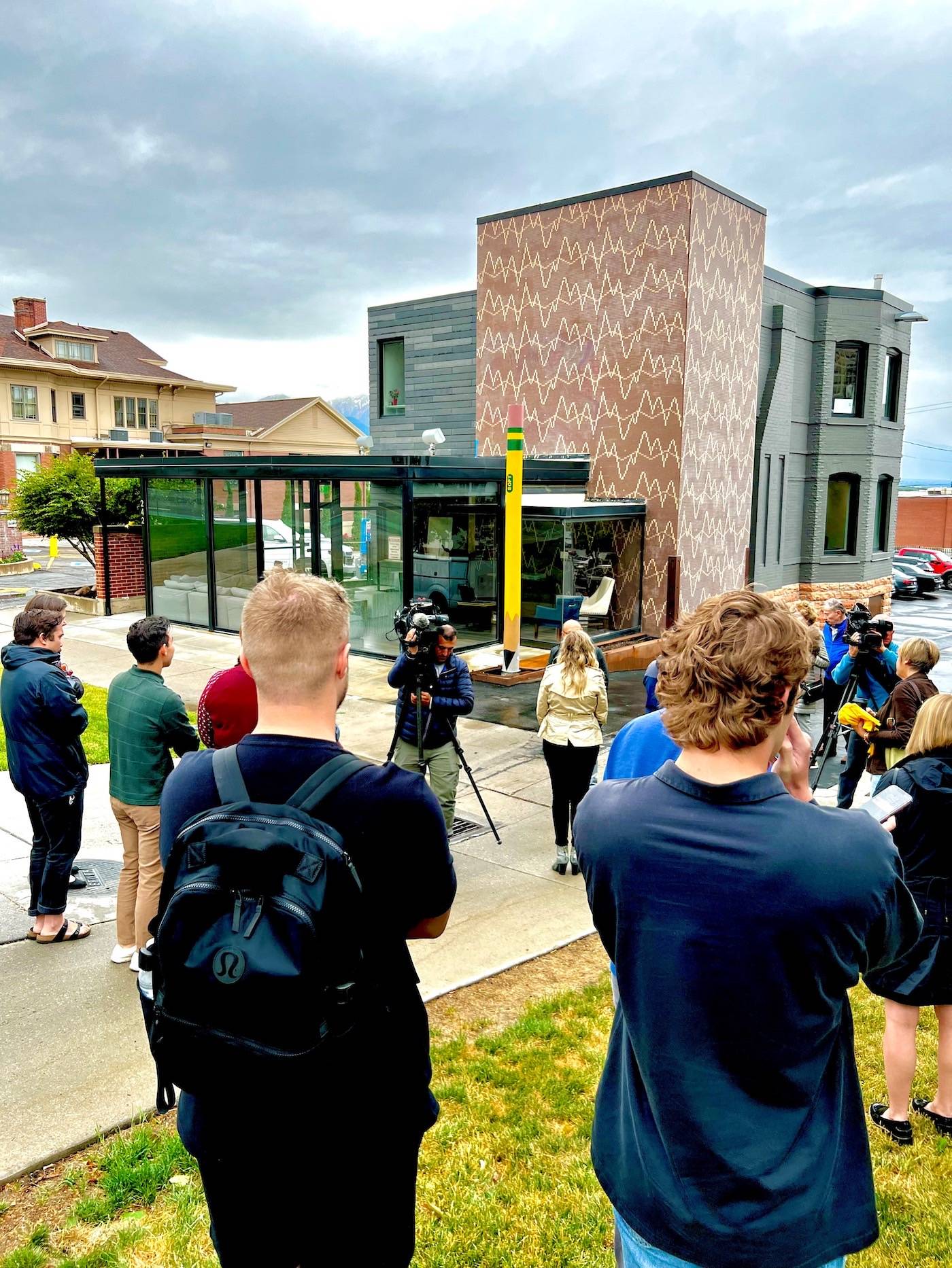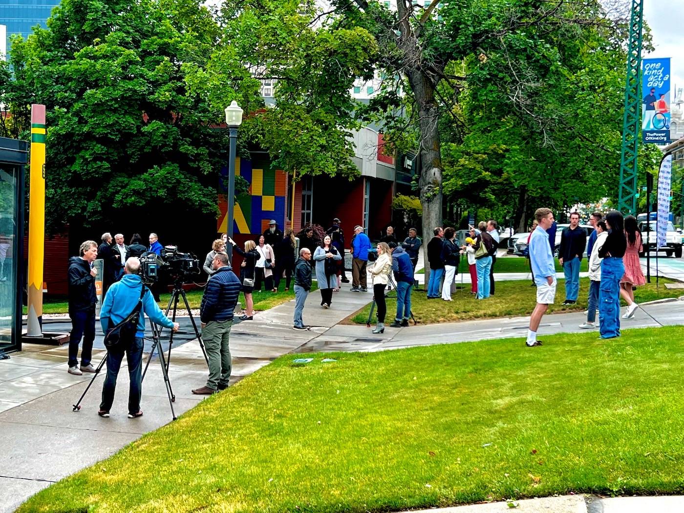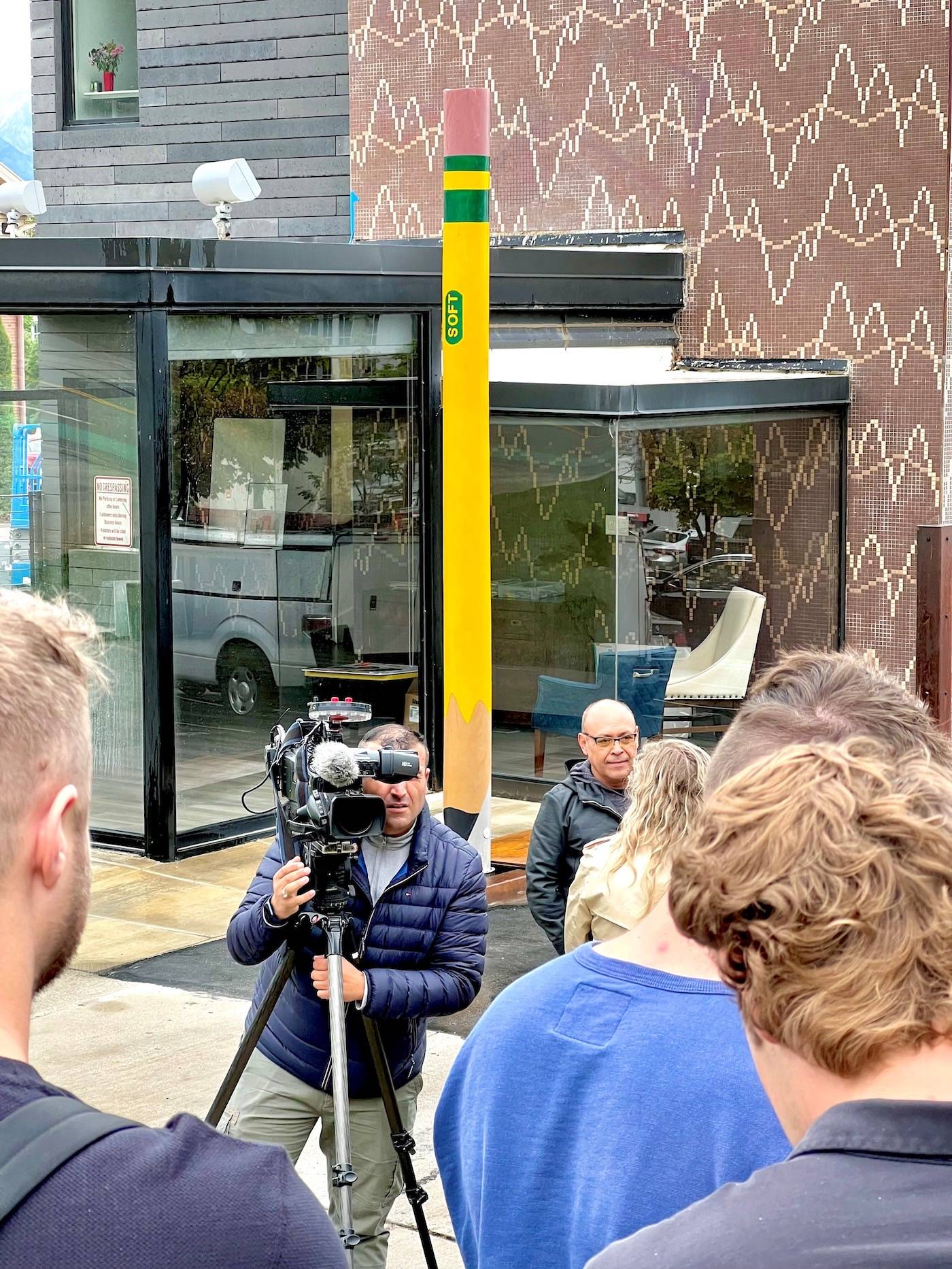 A new art installation is bringing ordinary objects to new heights on one of Salt Lake’s most historic city streets. On Point, by Ruben Cabello, was created from a refurbished telephone pole reclaimed from Rocky Mountain Power. The 15-foot pole has been given new life, reimagined, and repurposed into a bright yellow pencil as the latest downtown public art installation commissioned by J. Steven Price, founder and president of Price Real Estate.